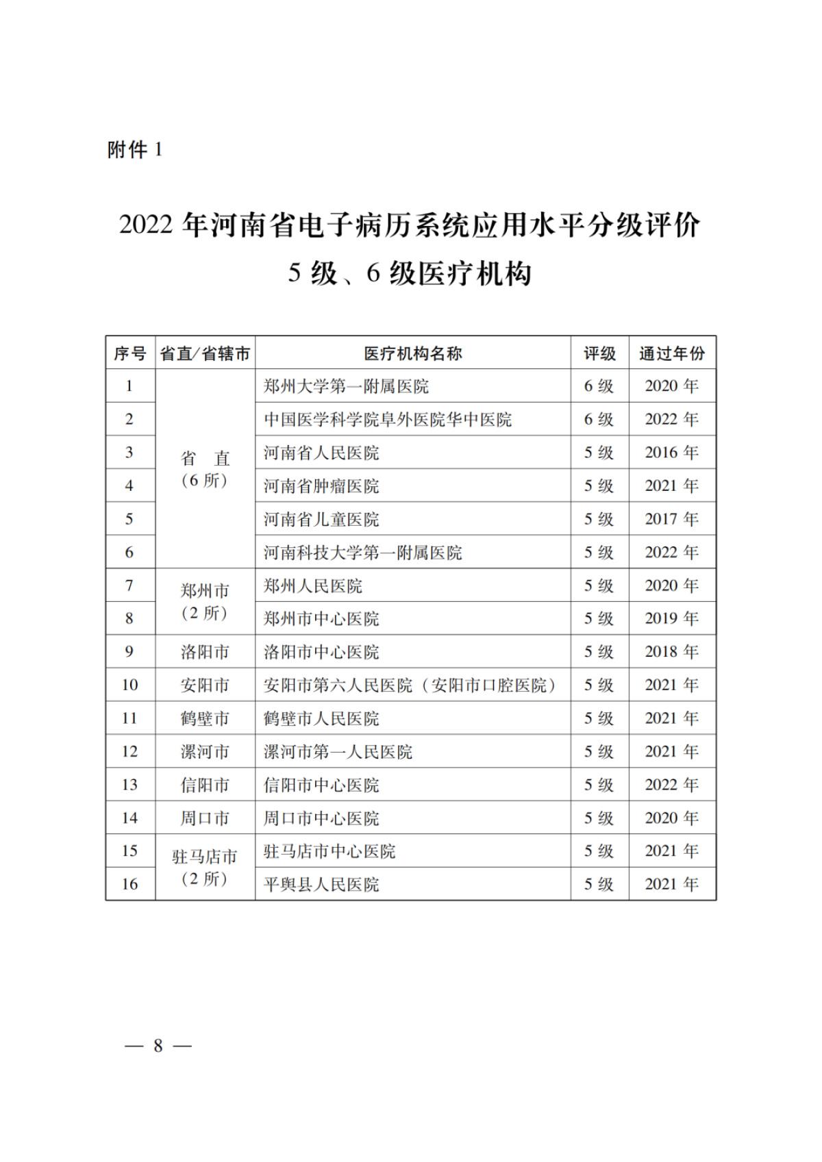 近日,河南省卫生健康委公布了《2022年河南省电子病历系统应用水平分级评价结果》,2022年全省完成评价数据报送的医疗机构共535所。其中,郑州大学第一附属医院、中国医学科学院阜外医院华中医院都达到了6级,是全省等级最高的医院。