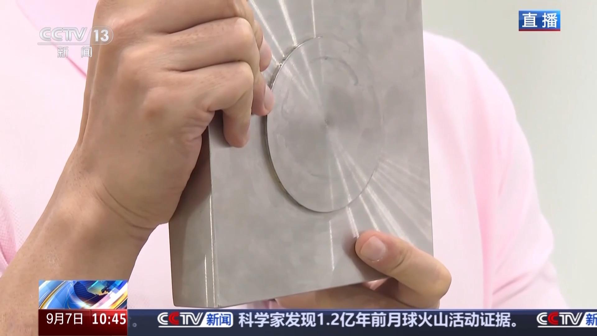 这是一张出自医院的胸片,原理是用X光来探测我们人体的内部构造。同步辐射光源产生的光同样是来研究内部构造的,但不是人体,而是物质材料,比如像这样的钢板。