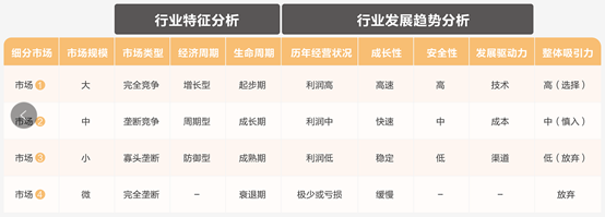 通过对行业市场类型、经济周期和生命周期的分析、判断,可以初步判定该行业这一时期盈利水平的高低、经营的稳定状况等特征,对后续的产品市场细分决策,选择目标市场起指导作用。
