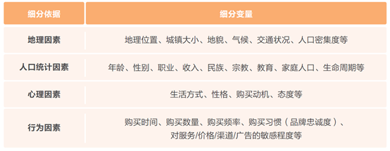 一般来说,一些带有客观性的因素,如年龄、性别、收入、地理位置、民族等,都易于确定,并且有关的信息和统计数据,也比较容易获得;而一些带有主观性的因素,如心理和性格方面的,就比较难以确定。