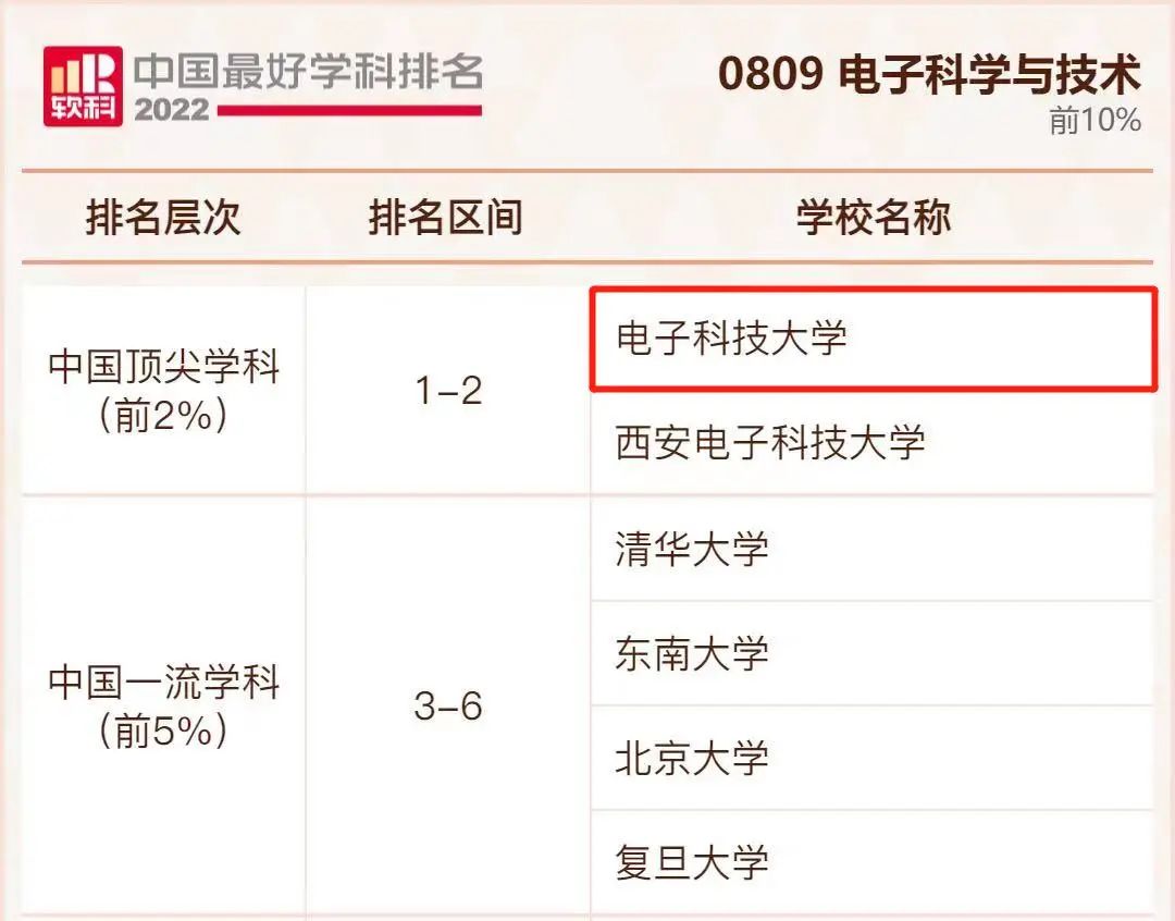 赞!2022软科中国最好学科排名发布,电子科技大学26个学科上榜!