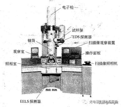 如图一所示为一个常见的透射电镜装置外观图。成像的基本过程是这样的: