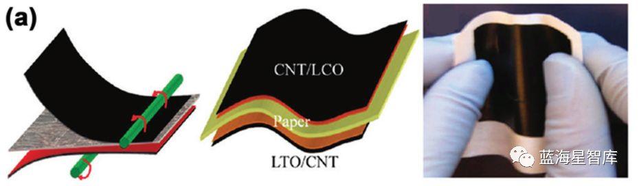 图5 使用CNT柔性电极的纸状锂离子电池