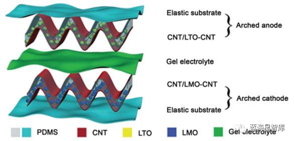 柔性电源是构建柔性电子器件的基础,能进行弯曲、折叠、褶皱和拉伸,同时保持其电化学性能,要求其正极、负极、隔膜、电解质、集流器、封装材料均具备良好的变形能力。其中,可拉伸电源作为一种重要的柔性电源,在2010年前后开始快速发展,目前仍处于研发初期。