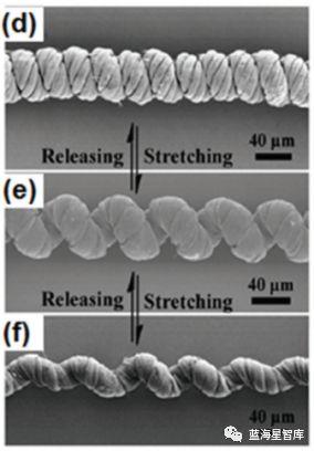 图8 缠绕在弹性材料上或自行盘绕成弹簧状的两种纤维状电极