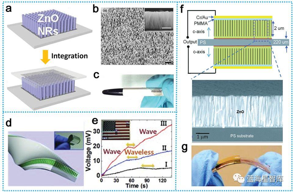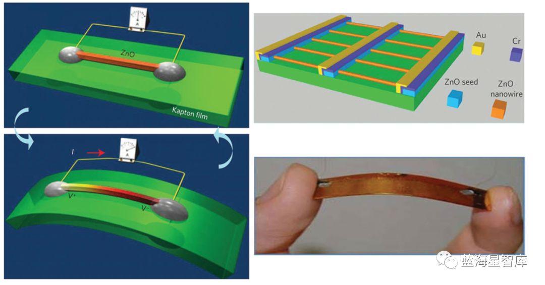 图10 纵向排列ZnO纳米线制成柔性压电纳米发电机