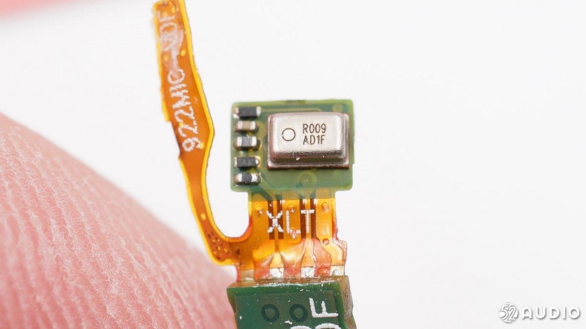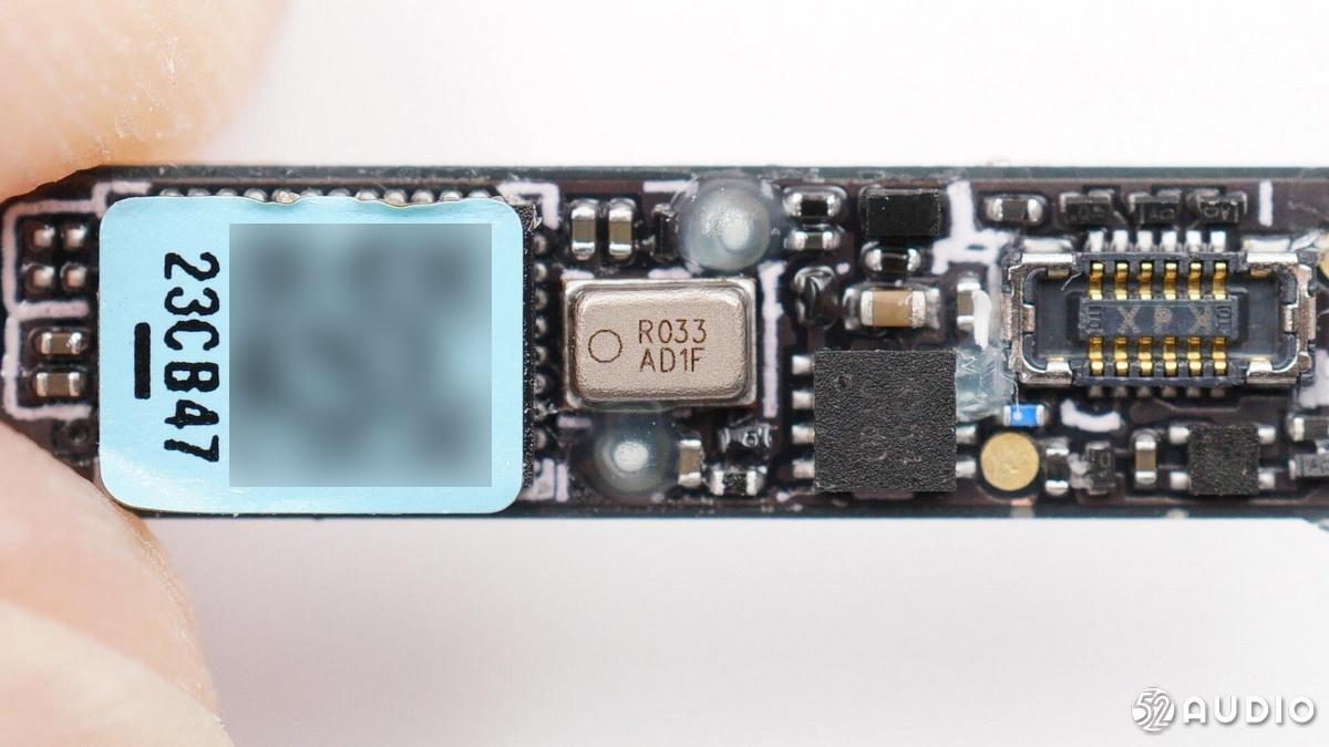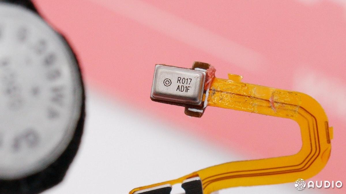 瑞勤的MEMS硅麦,镭雕R017 AD1F,共有三颗,分别用于主动降噪功能的前馈和后馈以及通话拾音。