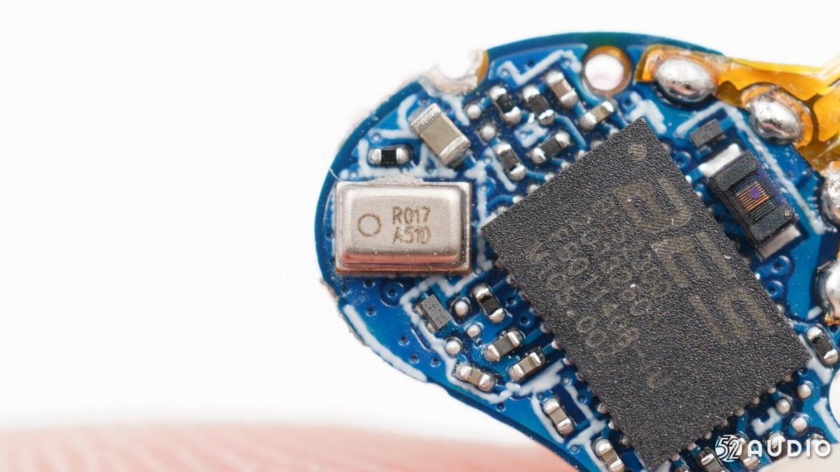 海贝WH3最大的特点是数字分频功能,需要依靠高通QCC5121蓝牙音频SoC较为强大的运算能力,芯片内置双DSP分别驱动动圈和动铁单元,内部完成分频功能。并且QCC5121具有高速传输效率和低功耗特性,可以保证耳机有相对稳定的续航。