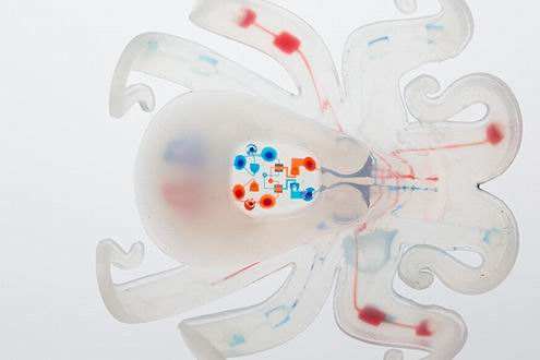 用于可穿戴设备和组织修复,提高战场救护能力。 研究人员通过学习生物体成功完成特定功能,根据生物体的经验开发设计出自我修复的解决方案,通过利用生物体的自我组织修复能力,指导复杂电子结构及元器件的组装,最终实现生物体与电子元器件的无限融合,完全利用生物体的高效运行、复制与修复能力。比利时布鲁塞尔大学已经研发出一种可用于软性机器人自我修复的柔性材料,这种柔性材料未来可用于战场救护和假肢修复。美国卡耐基梅隆大学正在研发由软导电聚合物、凝胶制成的人工皮肤和神经组织,这种材料可作为人造肌肉使用,可以从2.5厘米拉伸至2.5米,当被刺穿时可以自动融合修复。