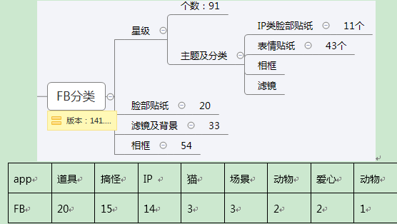 从上述表格可见,用户使用Fb、snapchat、B612后发布的大部分内容均带有贴纸;