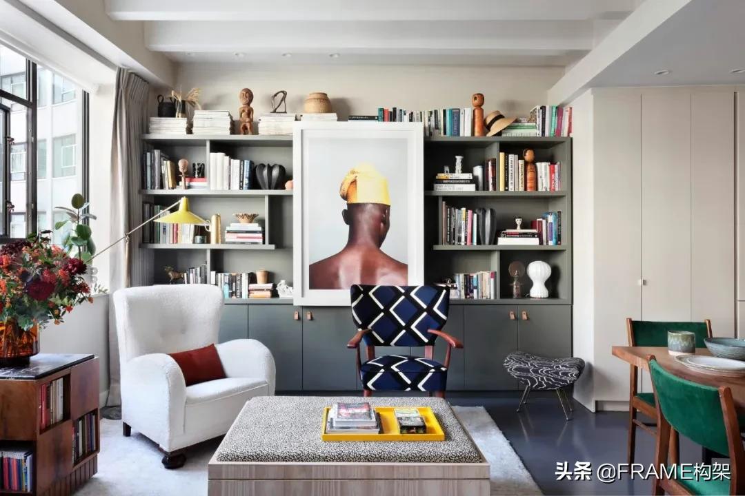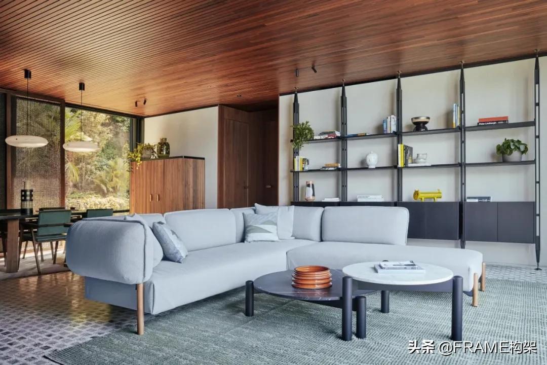 客厅里摆放着Uquiola为Moroso设计的“Love Me Tender”沙发,以及Franco Albini和Franca Helg设计的“Infinito”书柜。© SARA MAGNI