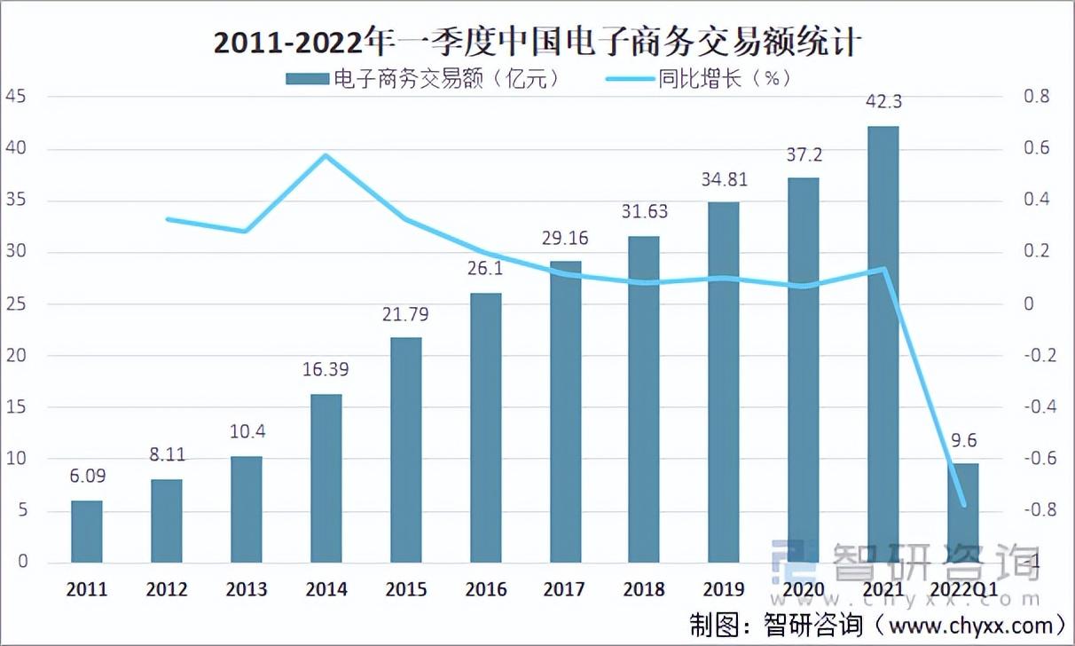 从中国市场来看,近年来中国电子商务飞速发展,2021年中国电子商务交易额达42.3万亿元,较2020年增加了5.10万亿元,同比增长13.71%,2022年一季度中国电子商务交易额已完成9.6万亿元,中国继续引领全球电子商务市场,还拥有全球最多的数字买家,中国将成为历史上第一个将一半以上的零售额进行在线交易的国家。