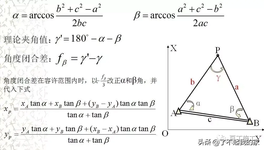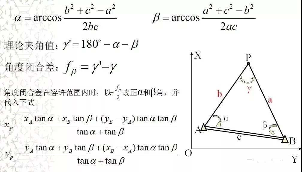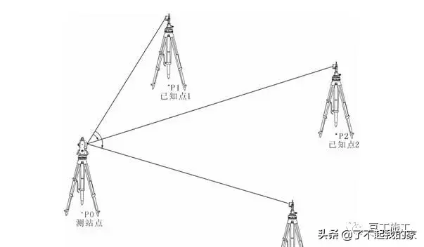 定义:在某一待定点P架设全站仪,通过测量两个及以上已知点的方式来计算出P点的坐标。测角交会:需要测量至少三个已知点。