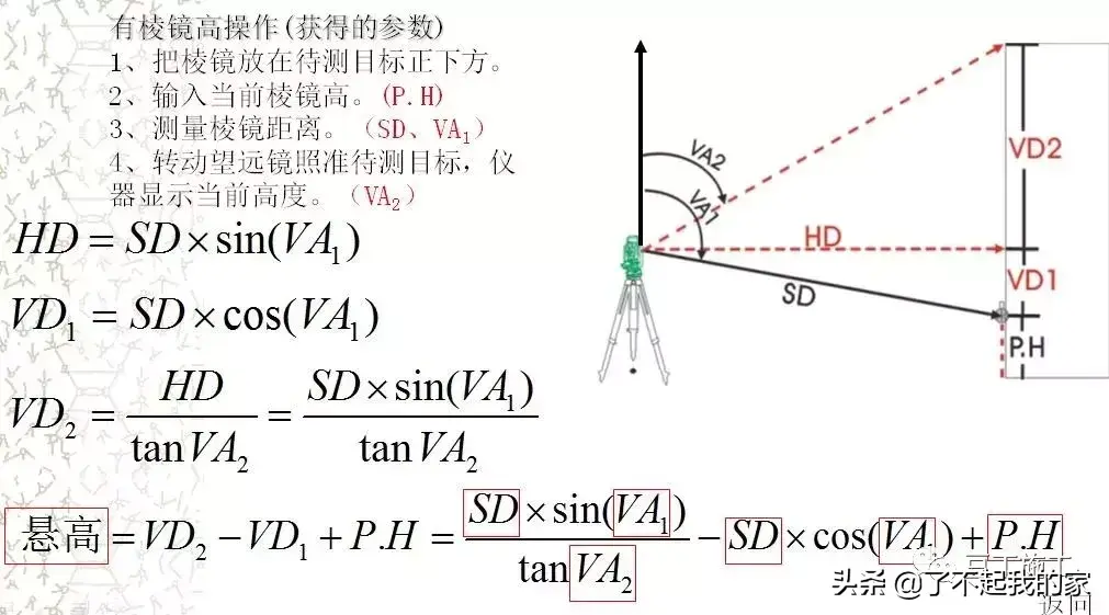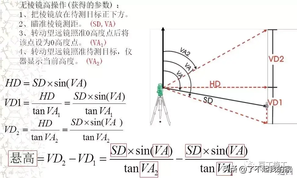 作用:间接测量目标高度,适用于无法直接测量高度的时候。