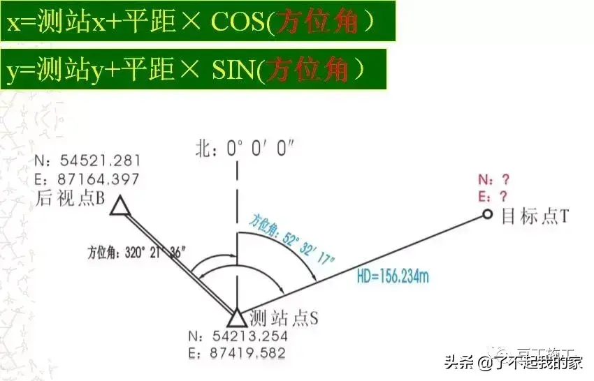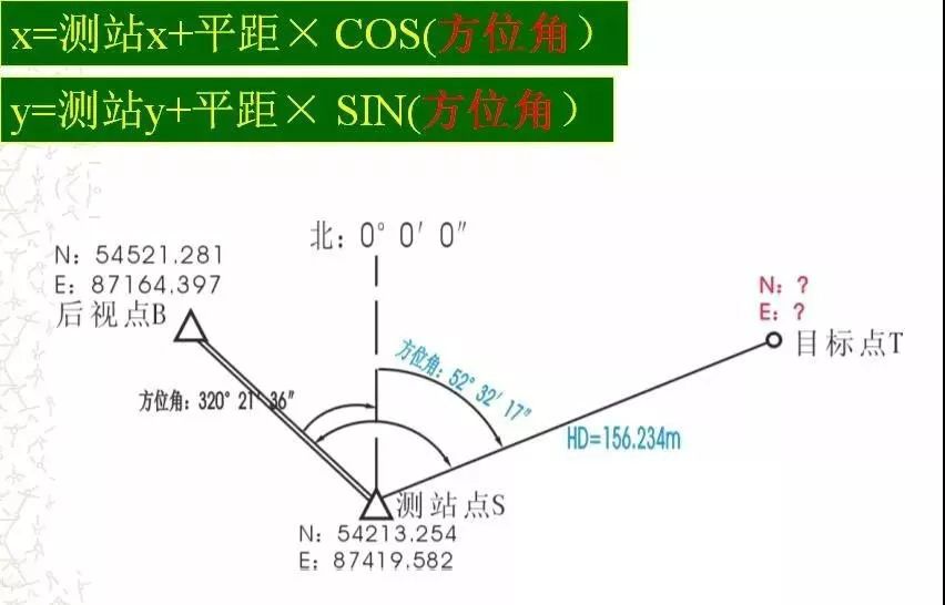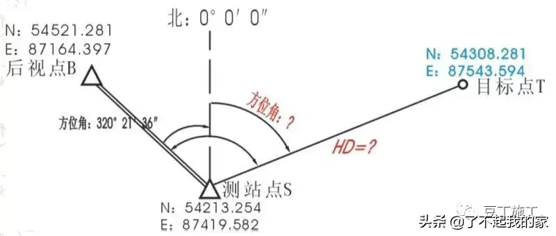 测站点到目标点的方位角,用于计算目标点的平面坐标。