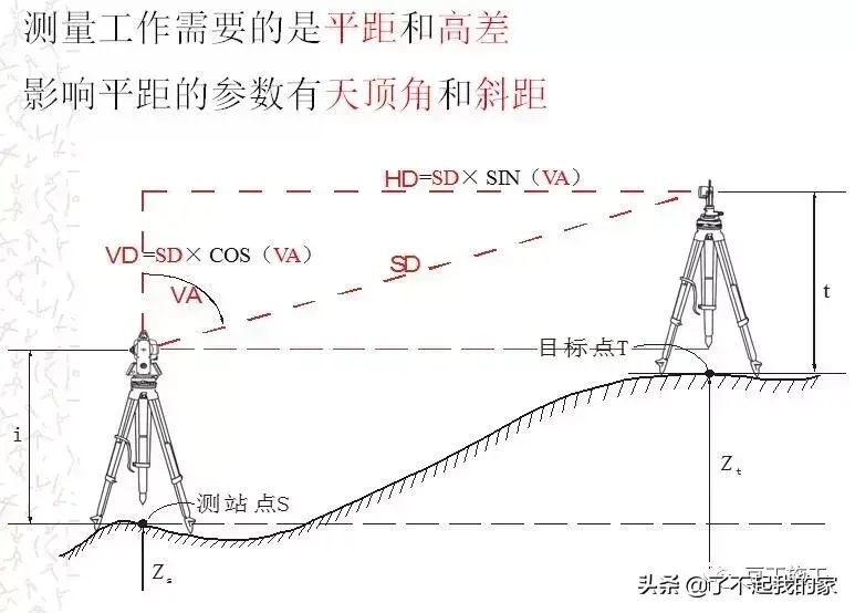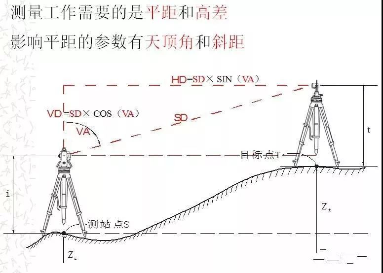 测站点到目标点的高差用于计算坐标点的高程(H)
