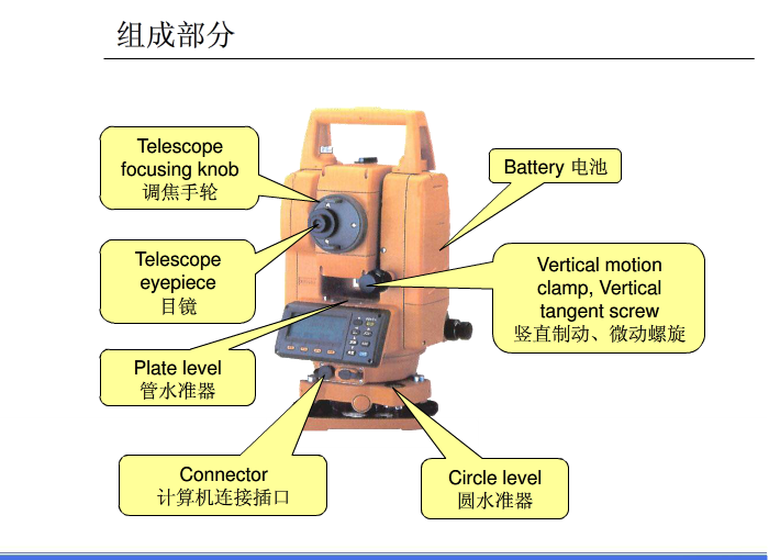 全站仪简单地说就是水准仪、经纬仪、测距仪及测量软件功能的结合。