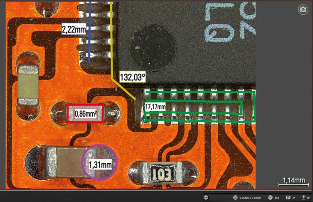 徕卡DVM6数码显微镜满足微观尺寸(10mm~500nm)的观察,例如在电子零件领域用于测量硬盘驱动器上零件通孔的直径、周长和深度分布,以及焊点的长度、面积和高度分布。