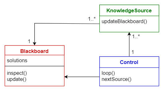 这种模式对于没有确定解决方案策略的问题是有用的。黑板模式由3个主要组成部分组成。