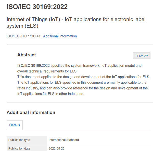 【CNMO新闻】近日,由京东方牵头制定的“ISO/IEC 30169:2022 Internet of Things (IoT) - IoT applications for electronic label system (ELS)”(《物联网-电子标签系统的物联网应用》)通过国际物联网权威标准组织ISO/IEC JTC1 SC41正式发布。不仅填补了行业空白,为行业规范化发展和技术升级提供了标准支撑,更彰显了京东方在全球智慧零售市场的领导力和物联网应用领域的强大创新实力。