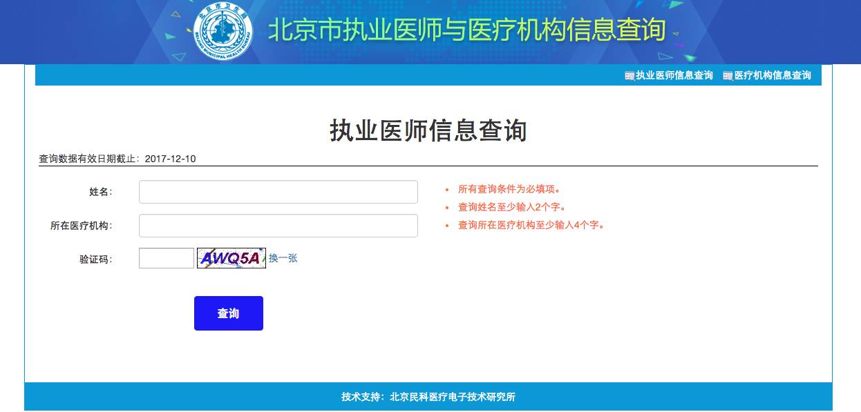 另外,如果想查询本市医疗机构、医师、护士的执业注册信息,群众可以在北京市卫生计生委网站的“北京市医政医管电子化注册平台”栏目中查询。