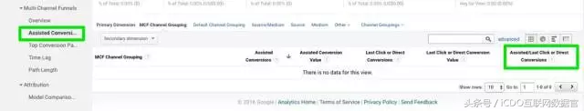 然后,查看Conversions > Multi-Channel Funnels > Assisted Conversions报告。仔细查看标识为“Assisted/Last Click or Direct Conversions”的这一列数据。数值小于1?那么该渠道是转化前的最后一个触点。数值大于1?那么该渠道只是转化路径中的其中一步。而如果使用的是首次或是末次触点模型?最有价值的渠道可能会被忽视。