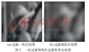 图2(a)是lena图像过滤得到的亮度部分,可以看出来它是不均匀的,而图2(b)经过两次过滤后得到的L1(x,y),很明显相对于图2(a)在亮度更加平缓。这表明通过二次过滤能够修正亮度不均匀区域,进而得到相对均衡的亮度。