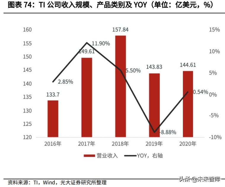 从成长性考量,模拟赛道可能并不是投资逻辑最性感的半导体市场,但德州 仪器以其创新谨慎,多样化的产品布局、应用战略,运用 IDM 模式广泛布局模拟 以及嵌入式处理器产品,提供可靠、稳定性产品给予全球客户,这是国内模拟厂 商在发展技术和拓展市场的同时,值得去参考和模仿的关键点之一。