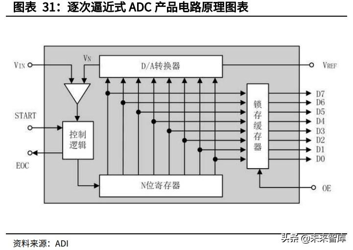 1. 核心使命:搭建物理世界与数字世界的桥梁。 自 ADI 成立之初,桥梁理念就 已深深地烙印在它的基因之中,为了构建这座桥梁,亚德诺对将模拟信号转换 数字信号的工具进行了长期的探索, ADI 多年来对 ADC 精度进行不断提升, 从早起开发的 8bits 左右 ADC,如 SAR 技术和 Flash(闪存型)技术,到 12bits 的 SAR 型 ADC,再到 16bits 精度的高速 ADC,引领转换器技术发展,推动了 工业、通讯、汽车电气化和消费电子等领域的信息数字化。
