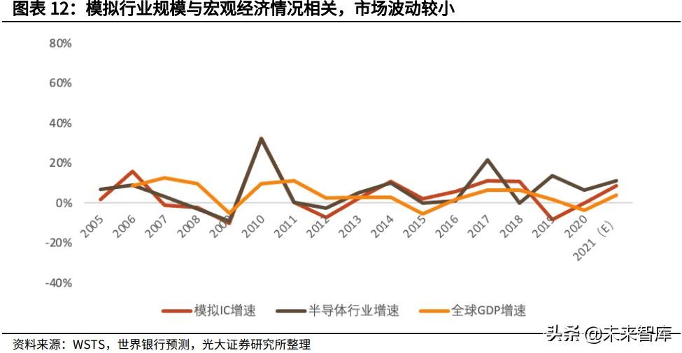 2.1、 全球模拟 IC 市场:规模稳定,21 年开启高增长