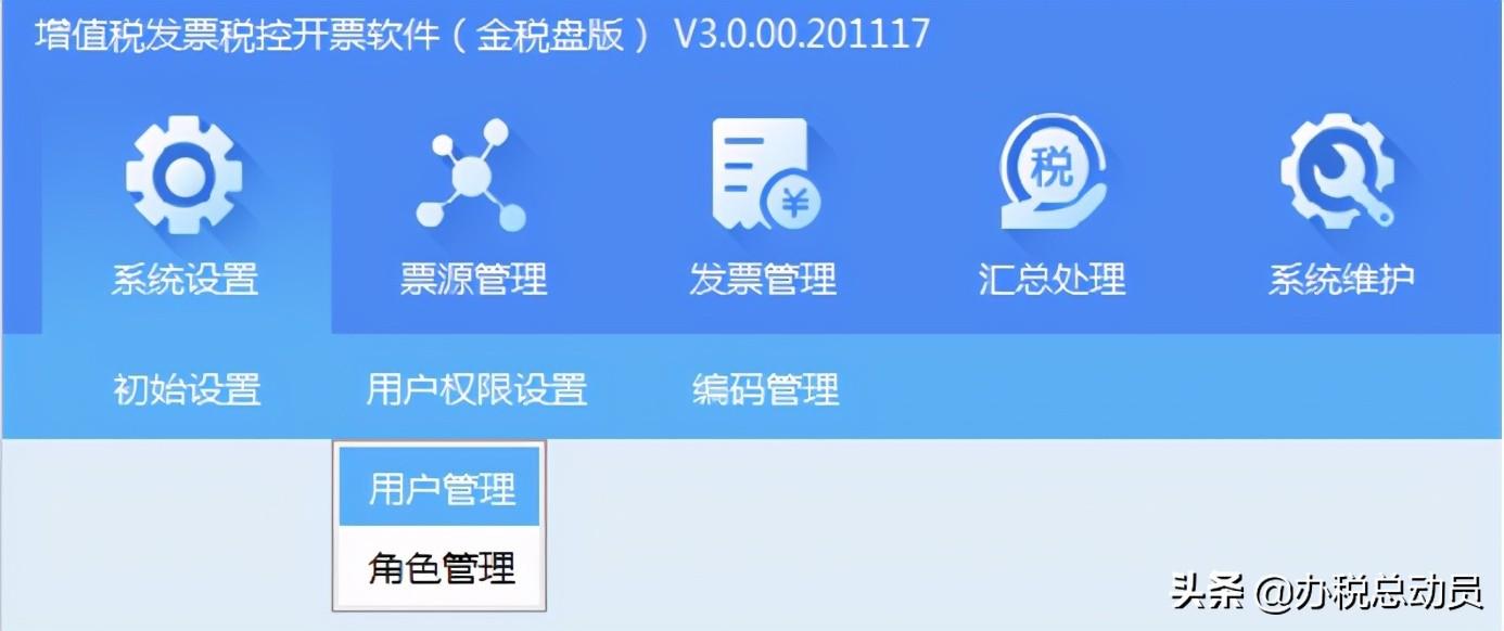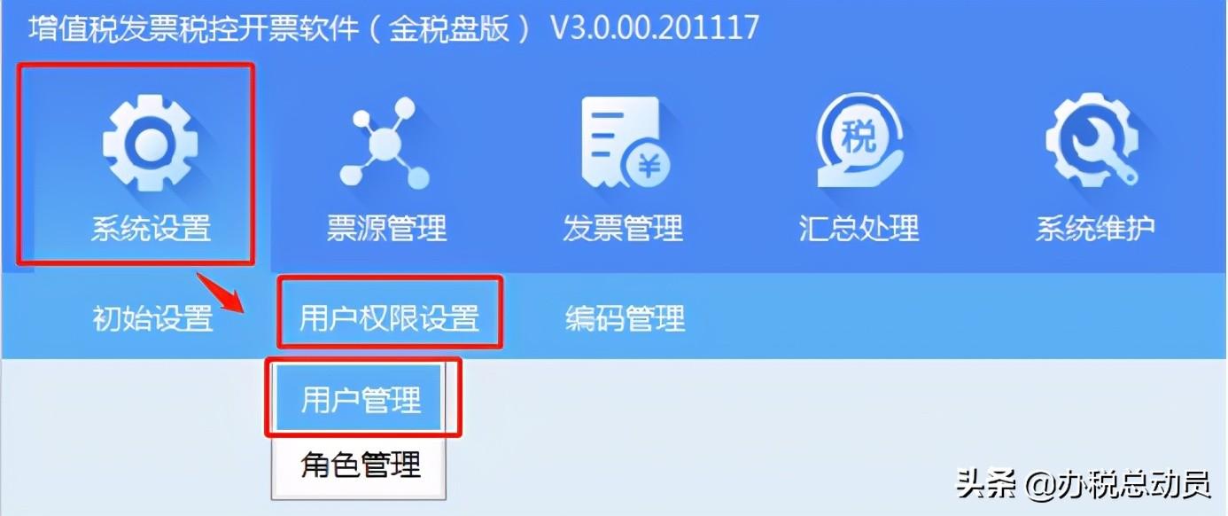第一步:以管理员身份登录开票软件,点击【系统设置】--【用户权限设置】--【用户管理】