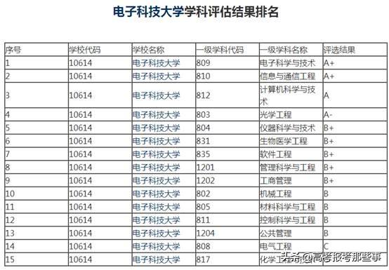 这里面比较意外的是数学和金融,这两个专业在上一轮教育部学科评估并没有上榜,但在19年被教育部评审为国家一流专业,这说明电子科技大学正在向综合型大学建设发展,摆脱学科单一的限制,发展前途不可限量。