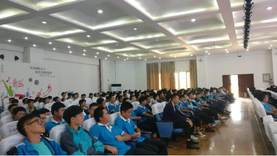学生代表高一电子三班曾俊杰上台发言,并与主持人一道带领全体学生庄严宣誓“不忘父母的养育,不忘恩师的教导;以宽容善待他人,用行规鞭策自我;以乐观对待挫折,用勤奋创造成绩。”