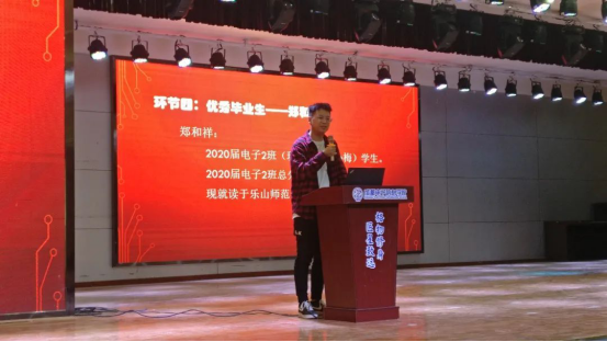最后教师代表谭周辉老师上台发言,重点分享了学习电子专业课的方法,并代表电子专业全体教师表态,以最饱满的工作热情投入到教学工作中。