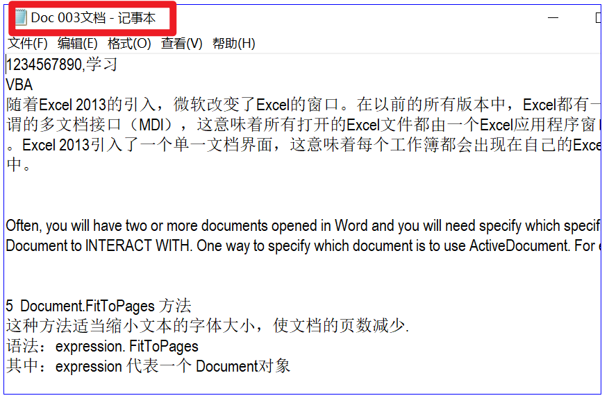 这里我给大家介绍一段代码,将当前文档保存为一个文本文件。我们看下面的代码: