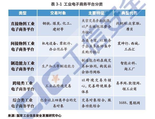 白皮书称,工业电子商务主要包括直接物料、间接物料、制造能力、综合类和跨境类五类平台,目前中国已出现了多家代表性平台。