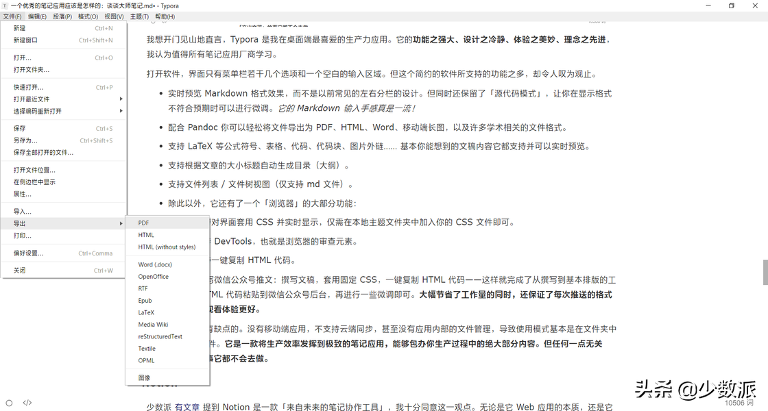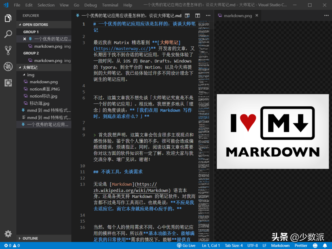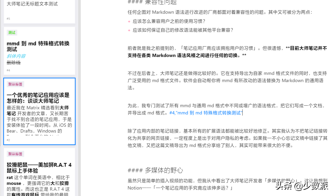 少数派一直是一个关注 Markdown、支持 Markdown 的网站,在少数派我也认识了许多支持 Markdown 的笔记应用。期间我体会到,由于各个公司的设计理念、目标人群,甚至公司体量的不同,市场上的笔记应用的风格也大相径庭。