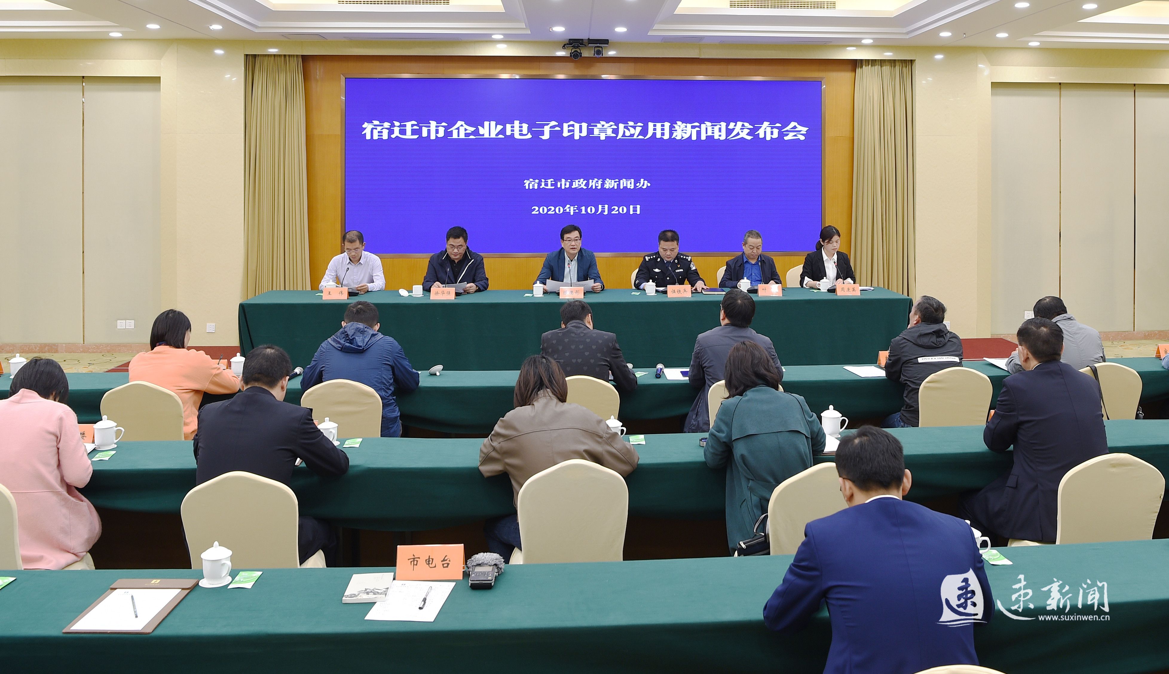 (速新闻记者 时晓凯/图 见习记者 周妮/文) 10月20日上午,宿迁市召开企业电子印章应用新闻发布会,市市场监管局、市公安局、市发展和改革委、中国人民银行宿迁市中心支行、市住房公积金管理中心联合解读了宿迁企业电子印章公共服务工作。