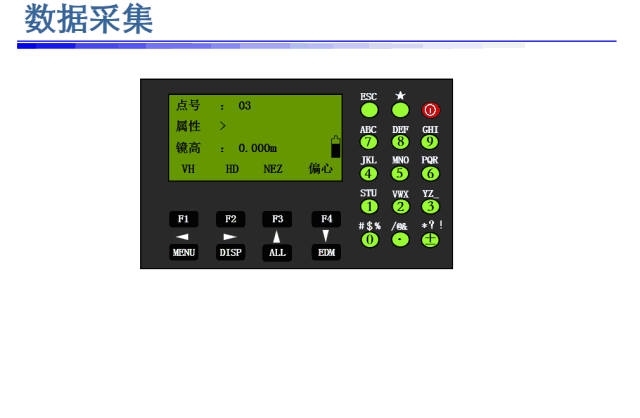 键盘是全站仪在测量时输入操作指令或数据的硬件,全站型仪器的键盘和显示屏均为双面式,便于正、倒镜作业时操作。
