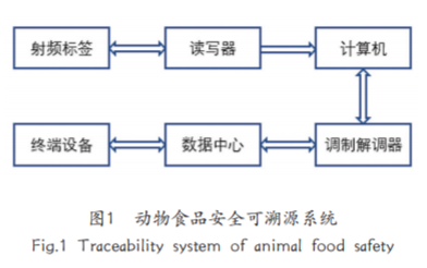 在畜牧业方面,搭载物联网技术的人工智能畜 牧养殖场,可以由大量传感设备和视频监控设备实 时、动态地监测畜禽的生长环境和生命特征表现, 整合畜牧业的数据信息,通过计算机控制系统进行 智能化分析和决策,最终产生相应的指令,实现精 准饲养,防治疾病,做到科学养殖畜禽。佩戴具有 跟踪技术设备的牲畜,在户外放养时能够通过无线 通信技术在终端机器获取其实时位置,实现无人工 监视的新形式放养。在加工产业链上,利用无线射 频识别、二维码等技术可定位加工产品的来源,物 流信息等,实现产品可溯源,保证食品的质量,如 图 1 所示。
