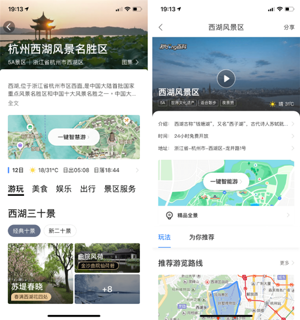 高德地图(左)和百度地图(右)的旅游景点概览页面