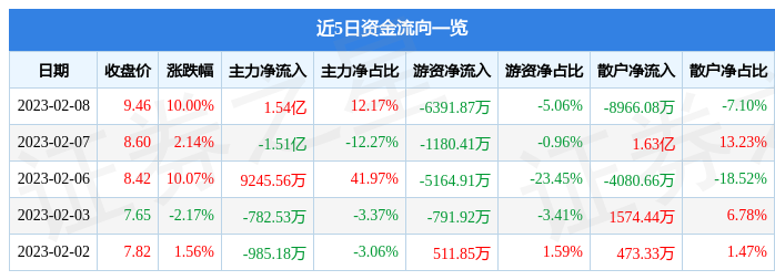 2月8日的资金流向数据方面,主力资金净流入1.54亿元,占总成交额12.17%,游资资金净流出6391.87万元,占总成交额5.06%,散户资金净流出8966.08万元,占总成交额7.1%。