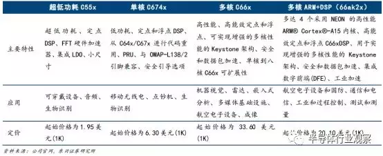 TI 公司官网上的主打的四款 DSP 芯片产品