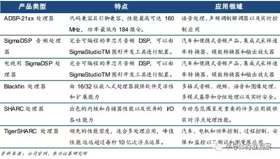 ADI 公司主打 DSP 产品及应用领域