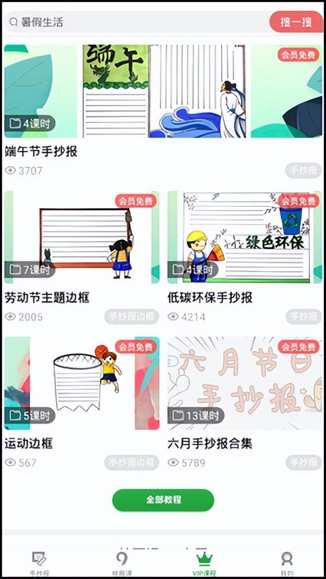 4、点开vip课程,在这里有着非常多的优秀手抄报,用户开通vip即可全部免费使用。