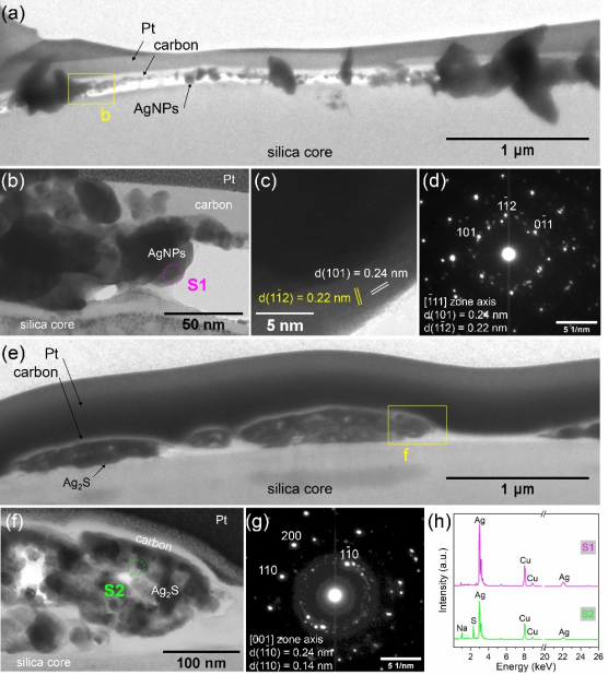 图2 两种载AgNPs微球的矿物学和化学性质的TEM表征