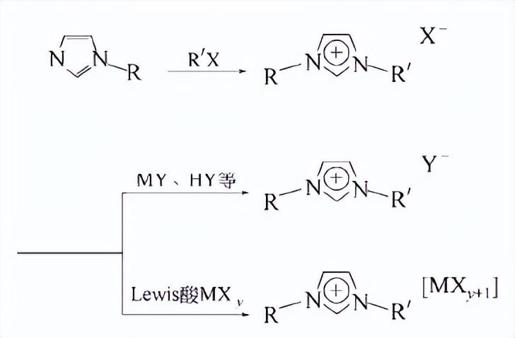 常规合成法包括一步合成法和两步合成法。离子液体的合成方法主要取决于目标离子的结构和组成,迄今为止,在合成的数百种离子液体中,最常见的合成方法就是一步法和两步法。