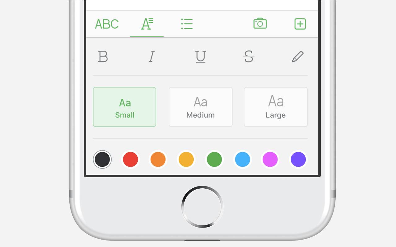 印象笔记 8.0 版提供更多样的文本颜色和字体格式。你可以通过不同的颜色和字号来设置主副标题,轻松标出重点,更快回顾重点信息。