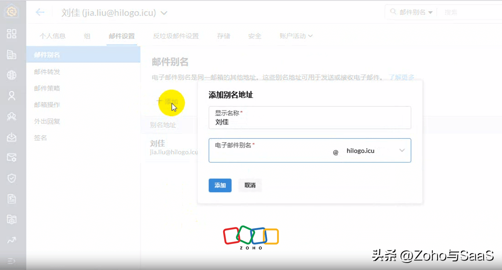 但在实际收发邮件过程中,很难为了注册网站而专门注册一个临时邮箱,另外一个解决办法就是邮箱分身。Zoho邮箱就提供邮箱分身功能,一个账号可以创建最多5个分身,主邮箱可以对其统一管理。