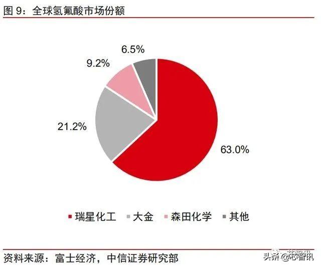 在全球氢氟酸市场中,日本企业居于绝对主导地位,瑞星化工(Stella Chemifa)、大金、森田化学三家日本企业合计市场份额超过90%。
